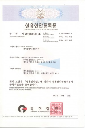 실용신안등록증(케이블베어분리기구)